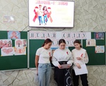 Учням 9 класу було проведено класну годину "Що таке насилля. Його форми. Як себе захистити."Дівчатка виготовили плакат,на якому показали одну із таких форм насилля як сексуальне,внесли свої пропозиції,як потрібно в такому випадку вміти себе захистити. Виготовили плакат "Ми проти насилля!" Учні показали,що можливе порозуміння між всіма народами,якщо добро переможе зло. І тільки любов до ближнього у вигляді сердечка здолає ворожнечу у вигляді змії.